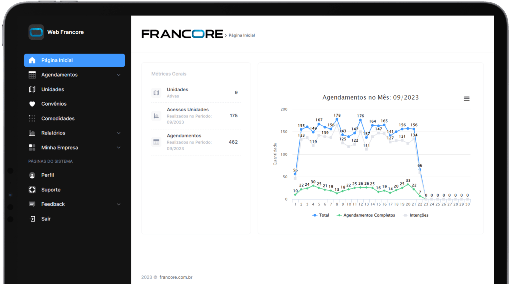 Simplifique a operação da sua franquia e foque no crescimento com agendamentos rápidos e ferramentas de gerenciamento avançadas com a Francore.